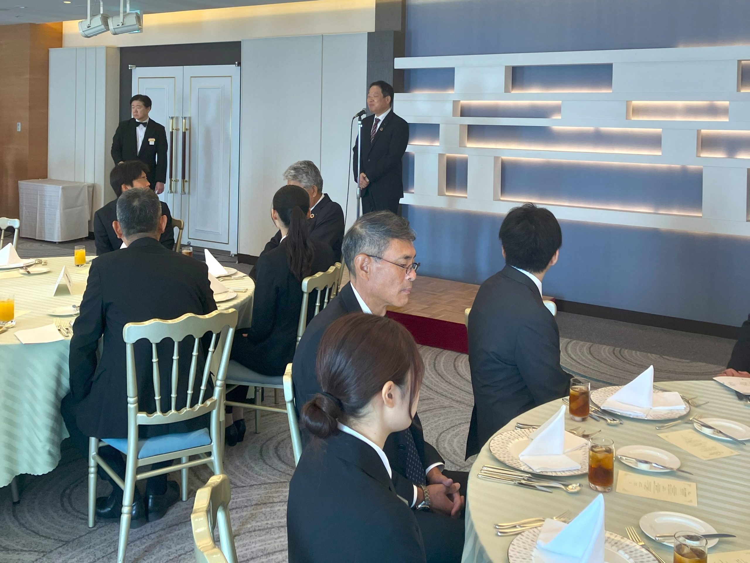 また、式後にはホテル阪神にて役員との昼食会を開催いたしました。エネルギッシュな自己紹介をはじめ、お料理を食べながら興味津々に質問する姿など、元気いっぱいな内定者のみなさんに、より一層期待が高まる一日となりました。