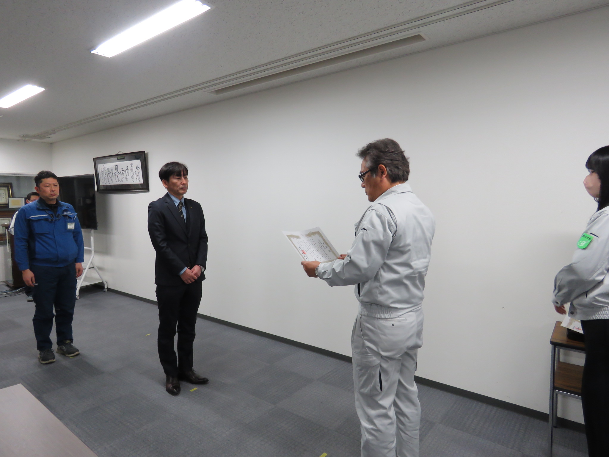 代表して、北東部設備営業所、大阪導管事業所へ、山口統括部長より表彰状が授与されました。